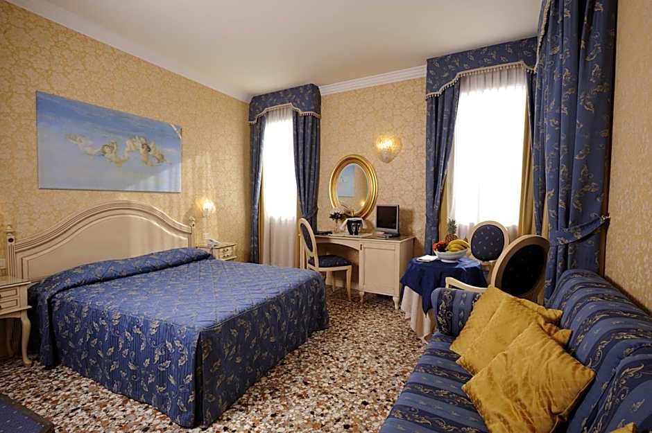 En suite junior suite with a view over the lagoon and Saint Mark's Canal. It comes with Venetian mosaic floors, air conditioning, a seating area and a flat-screen TV with satellite channels. Extra pillows or feather pillows are available upon request.